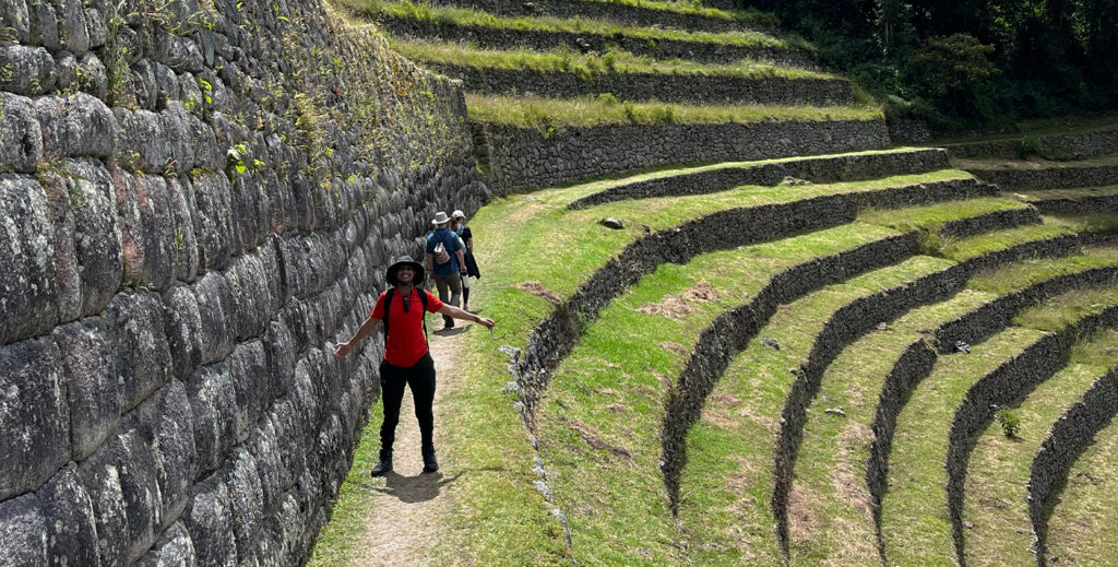 The Inca Trail leads uphill to the stunning ruins of Wiñay Wayna, meaning “forever young” in Quechua.