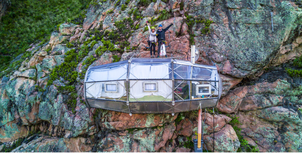 From here, the adventure continues as you begin your ascent to your cliffside accommodations at the famous Skylodge. First, you’ll rock climb up the mountain to the iconic Skylodge, but don’t worry—no experience is necessary! You’ll use a via ferrata, a designated climbing path equipped with cables, stakes, and embedded rungs for your safety.