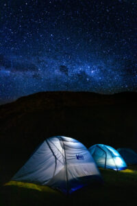 We supply the sleeping tents (4 person tents for two travelers), dining tents, tables, chairs, toilet tents, cooking equipment, water purifiers, Therma-rest air sleeping pads, and other camping equipment.